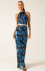 The Elea Halter Bias Dress is made from a luxurious silk rayon blend in an exclusive SACHA DRAKE print, cut on the bias for a flattering fit. With its elegant halter neck, removable fabric flower, and sequin-detailed belt, this maxi-length style is perfect for weddings and evening events.