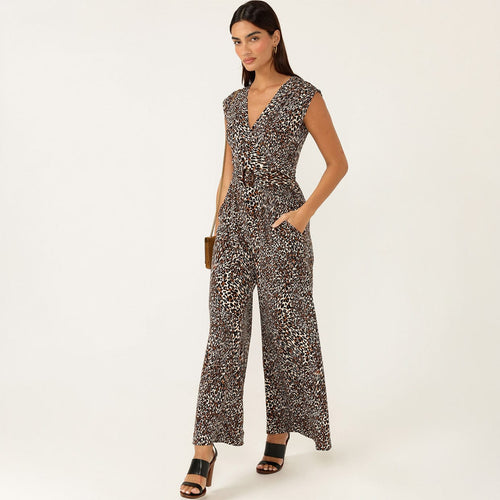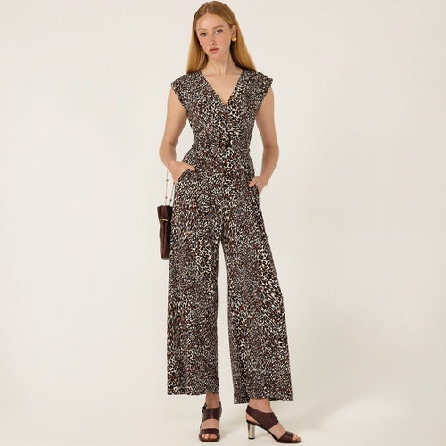 A wide‑leg cut creates a modern, lengthening shape, while the V‑neckline and cap sleeves balance the proportions beautifully. The result is a feminine, confidence‑boosting silhouette that's effortlessly wearable.