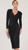 The Cassieopeia Dress is a striking midi with shimmering gold and blue lurex, made in a stretch fabric for a flattering fit. Featuring a sophisticated V-neckline, cross-over faux wrap front, midsection ruching, and removable shoulder pads, it's perfect for weddings, evenings and events.