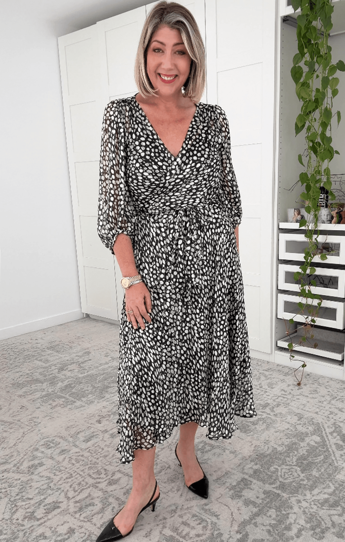 Dresses CLOUDLAND WRAP DRESS IN BLACK WHITE SPOT