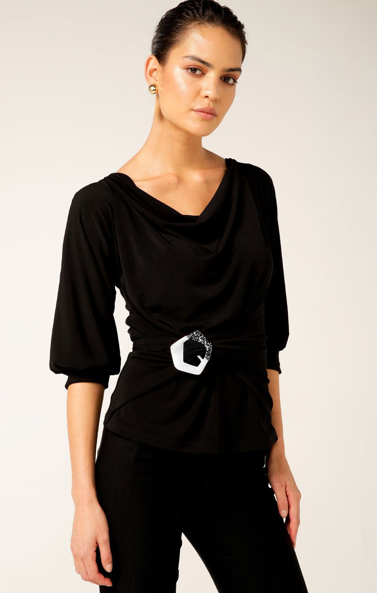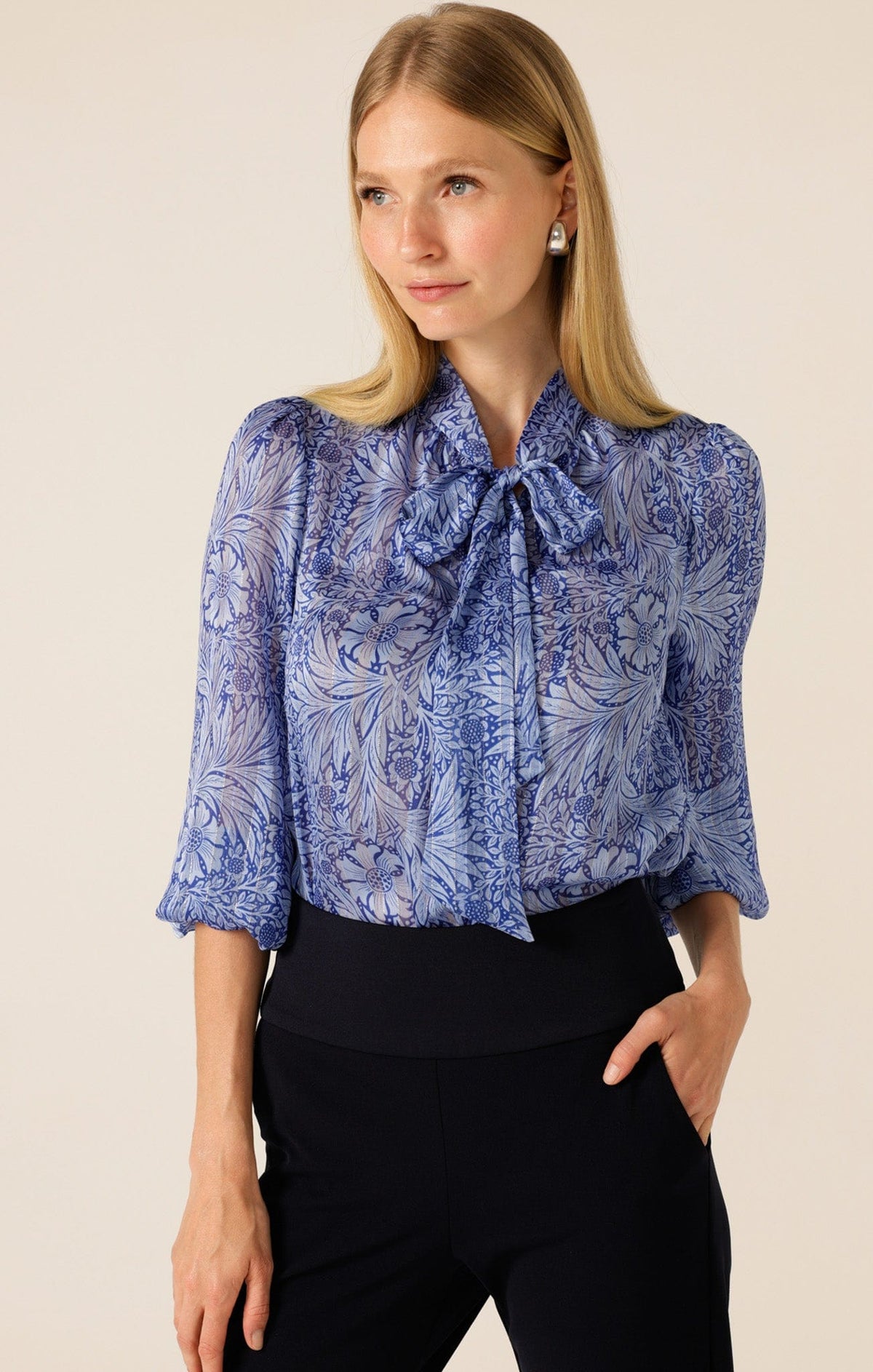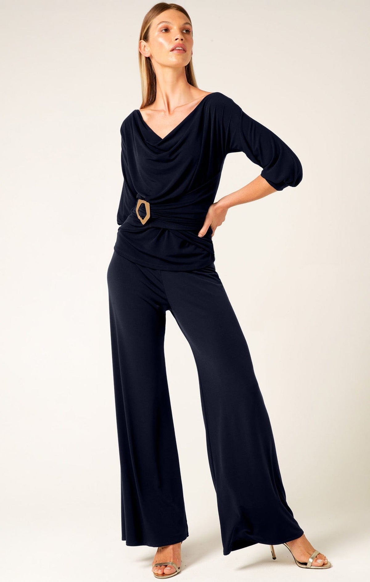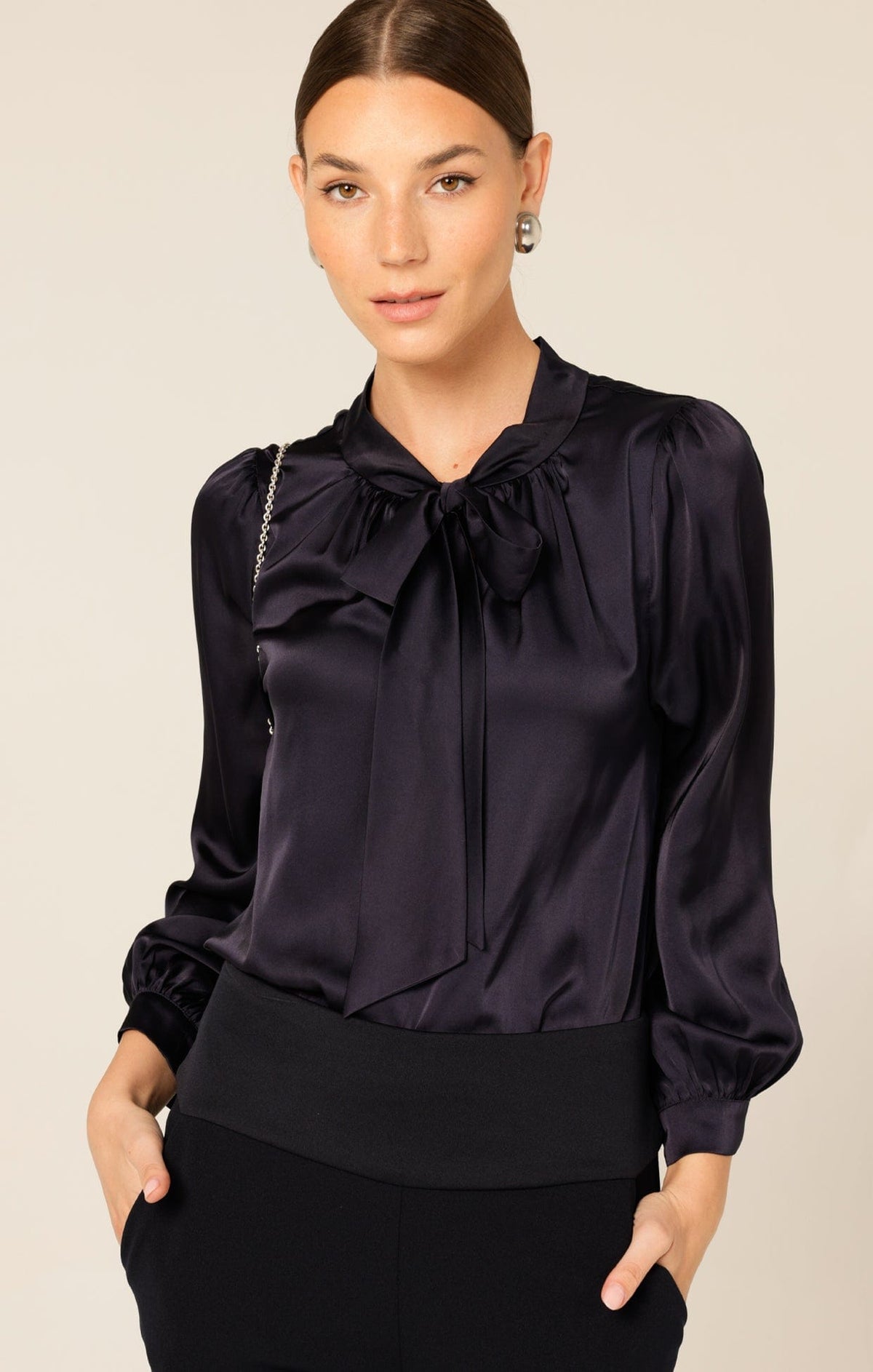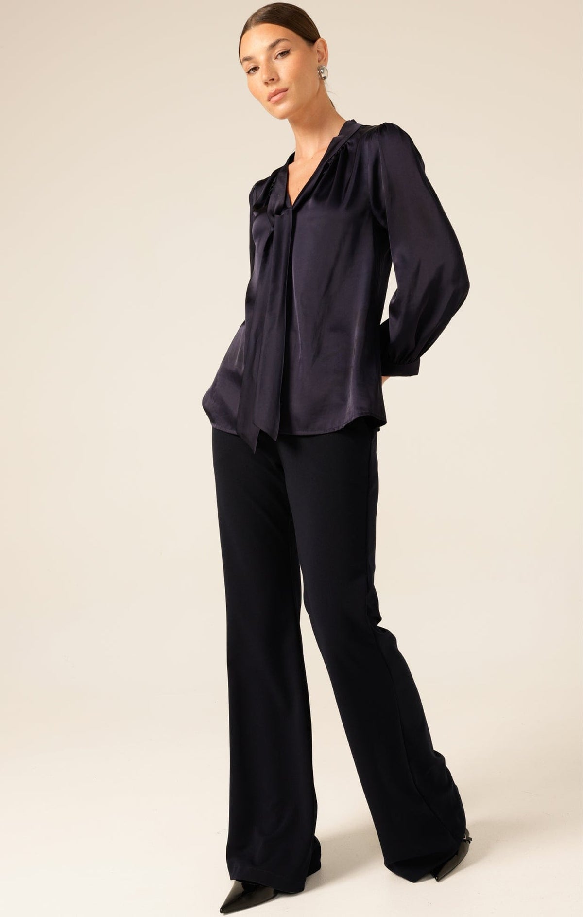SACHA DRAKEHIGH NECK TIE TOP IN NAVY Australian Made