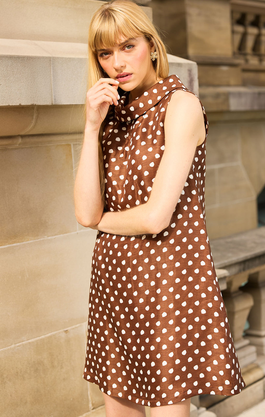 Make a statement in the Jolie Shift Dress, made from a luxurious printed Silk Linen with a refined rollover neckline and gathered detailing. This Australian-designed knee-length shift is lined for comfort and effortlessly elegant for weddings, races, and special events.
