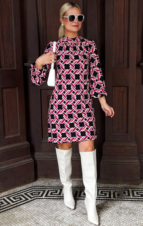 Love the bright pattern of this dress. Great quality jersey. Takes me back to the ‘ good old days of the late sixties and early seventies. Will wear it with boots for my birthday next week. I went down to the size 10 in this style. Love it. 💕💗💖💞