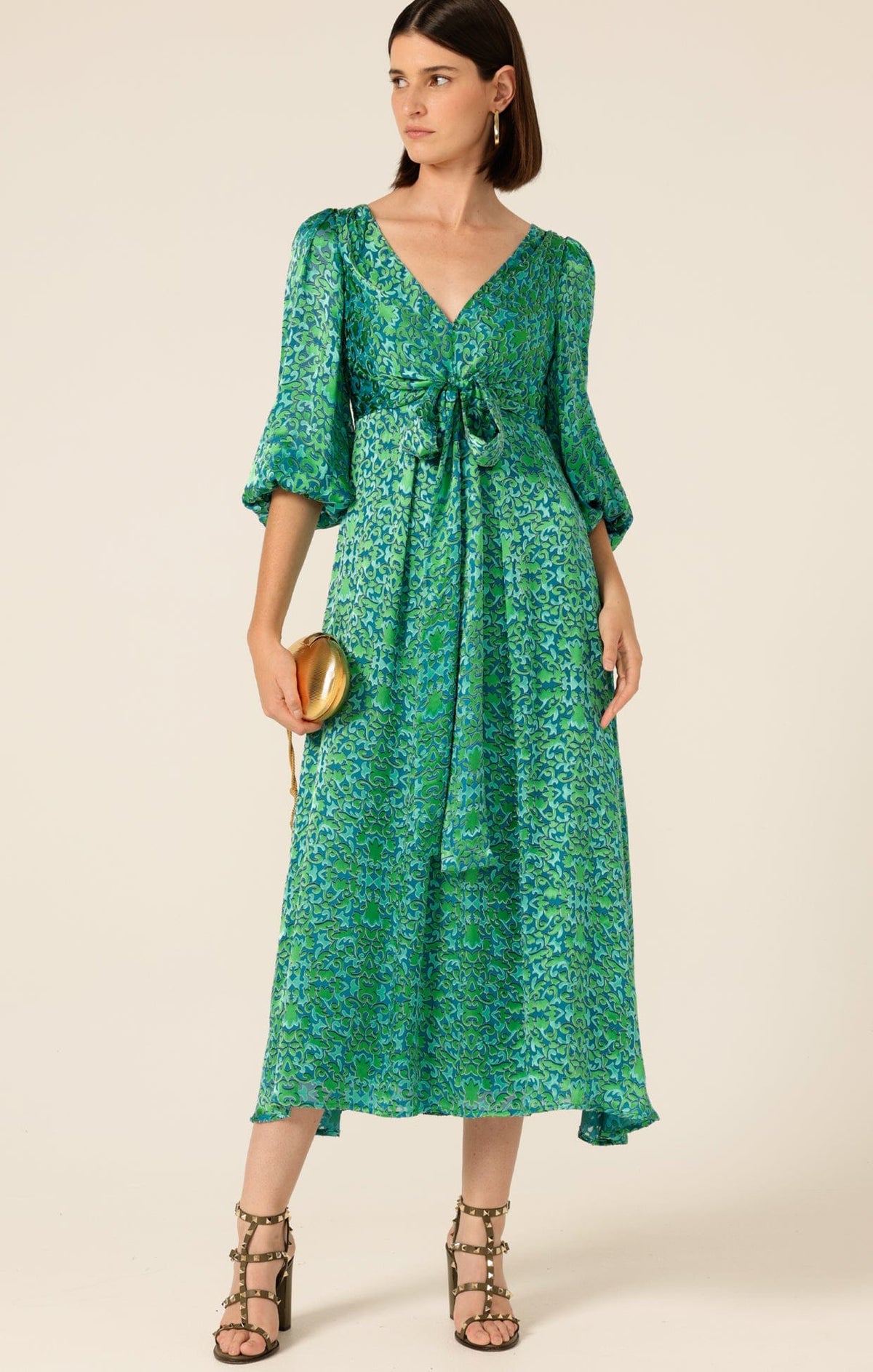 Mérida is a collection that channels opulent grandeur with the timeless elegance of a bygone era, captured within the walls of a stunning vintage house in Mérida, Mexico. As the sun sets, casting a deep golden glow over the intricate architecture, the collection comes to life, draped in rich turquoise, emerald, and sapphire. With its faded grandeur and ornate details, the scene becomes the perfect backdrop for this luxurious journey of the new season at SACHA DRAKE.