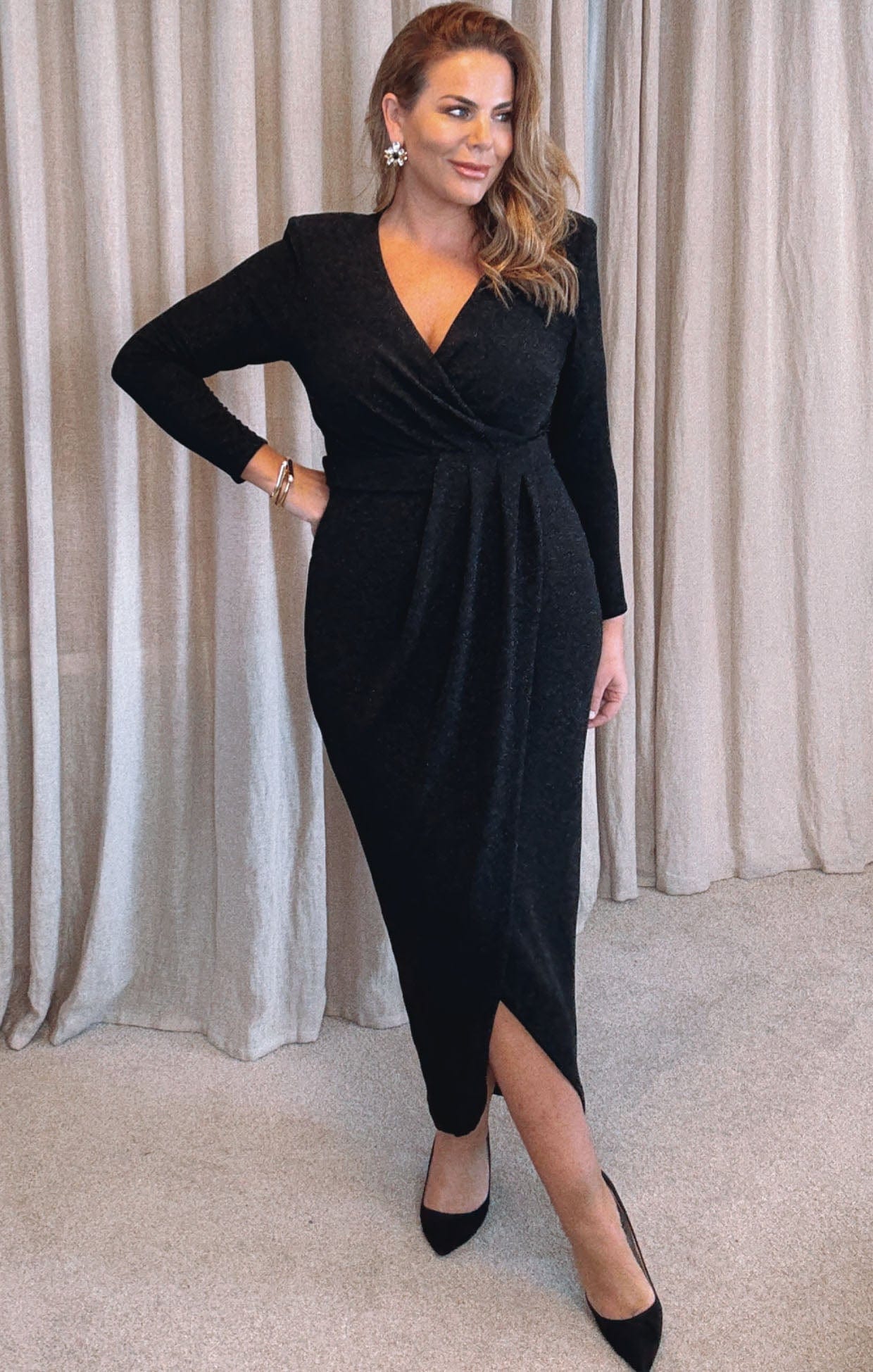 This is the power dress for black tie or date nights . Dynasty /Dallas vibes with the shoulder pads which can be removed for a softer look. I sized up to 16 since quite a lot of middle section and bust squeeze which gives some great shape and confidence when wearing .