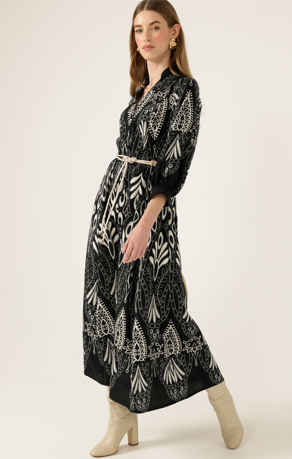 INDIE SHIRTMAKER DRESS IN BLACK CREAM