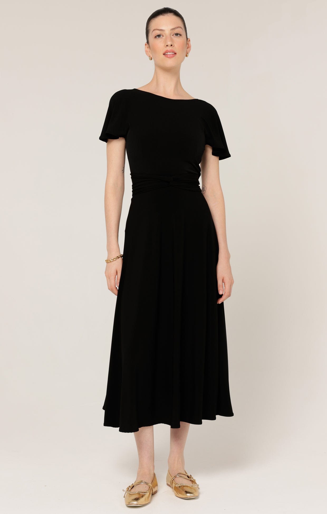 Dresses FLUTE SLEEVE REVERSE WRAP IN BLACKWears Size 8 - 176cm