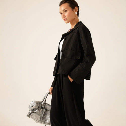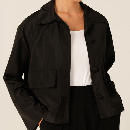 Stylish and versatile, the Button Up Cropped Jacket is made from a lightweight, water-resistant memory taffeta in a relaxed boxy fit. With statement buttons, a double-layer back, and foldable sleeves, it’s the perfect office-ready layering piece.
