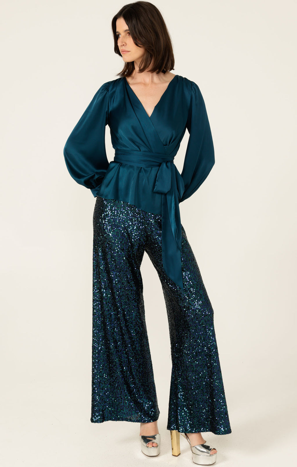 Pants Events SEQUIN PALAZZO PANT IN PEACOCK