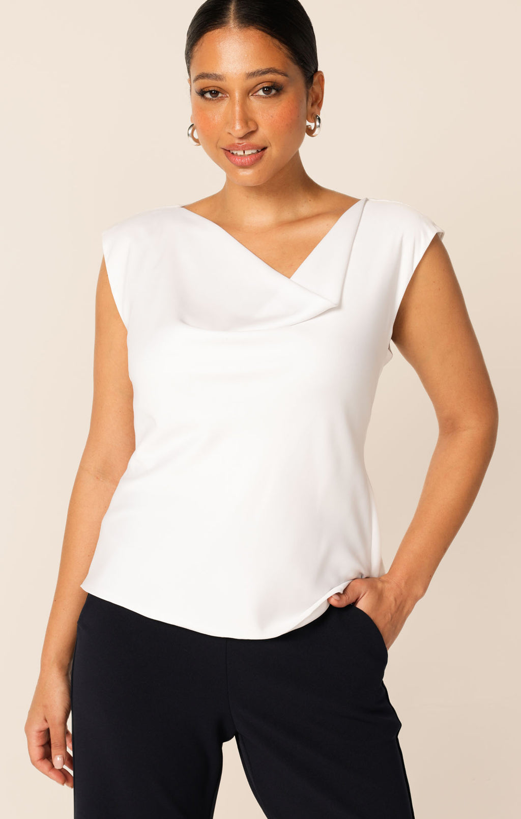 Elegant and versatile, the Cowl Bias Top is made from lightweight fabrication with a double-layered design for a non sheer sleek look. Featuring a flattering bias-cut front, cowl neckline, and back peplum seam, itβs perfect for the office and can be styled tucked in or out.