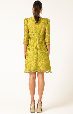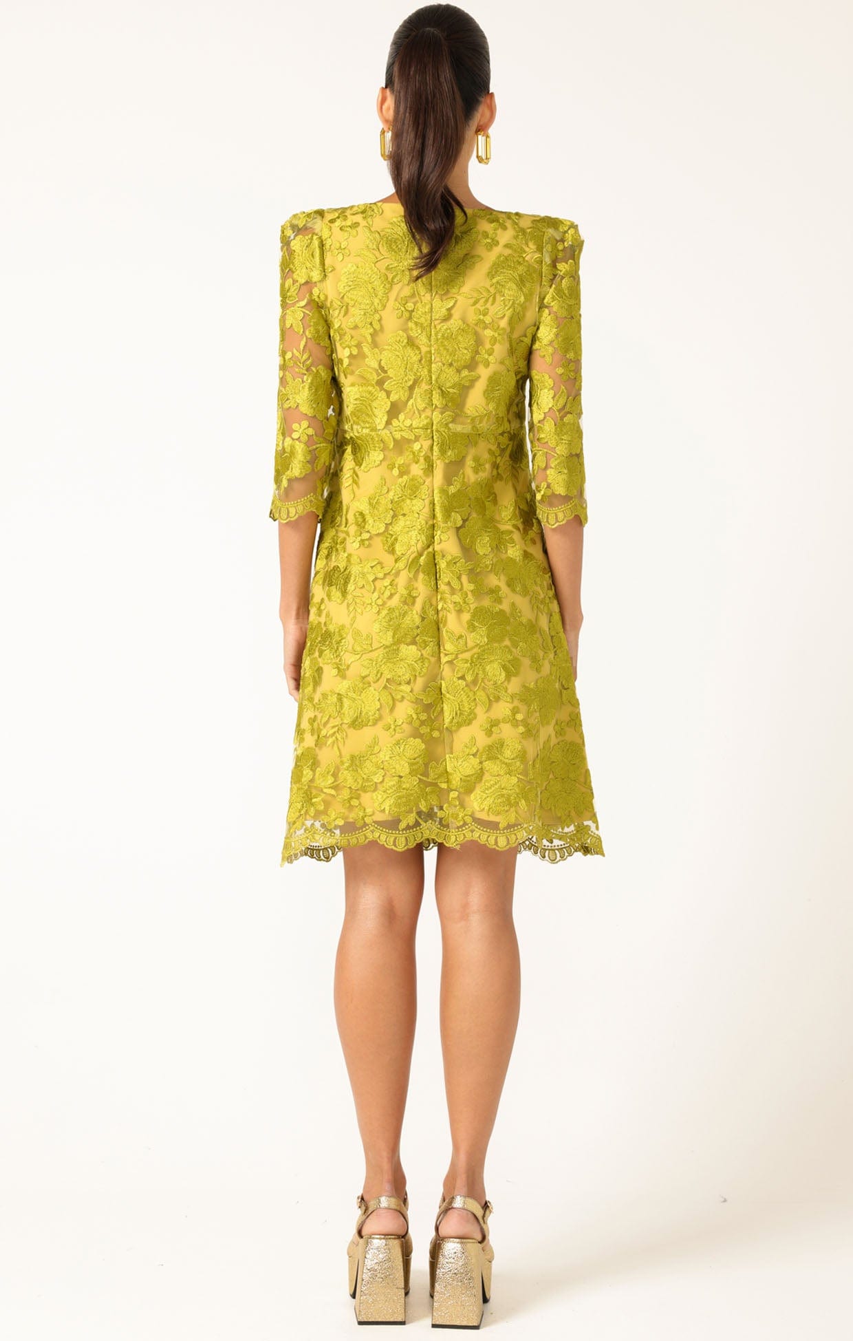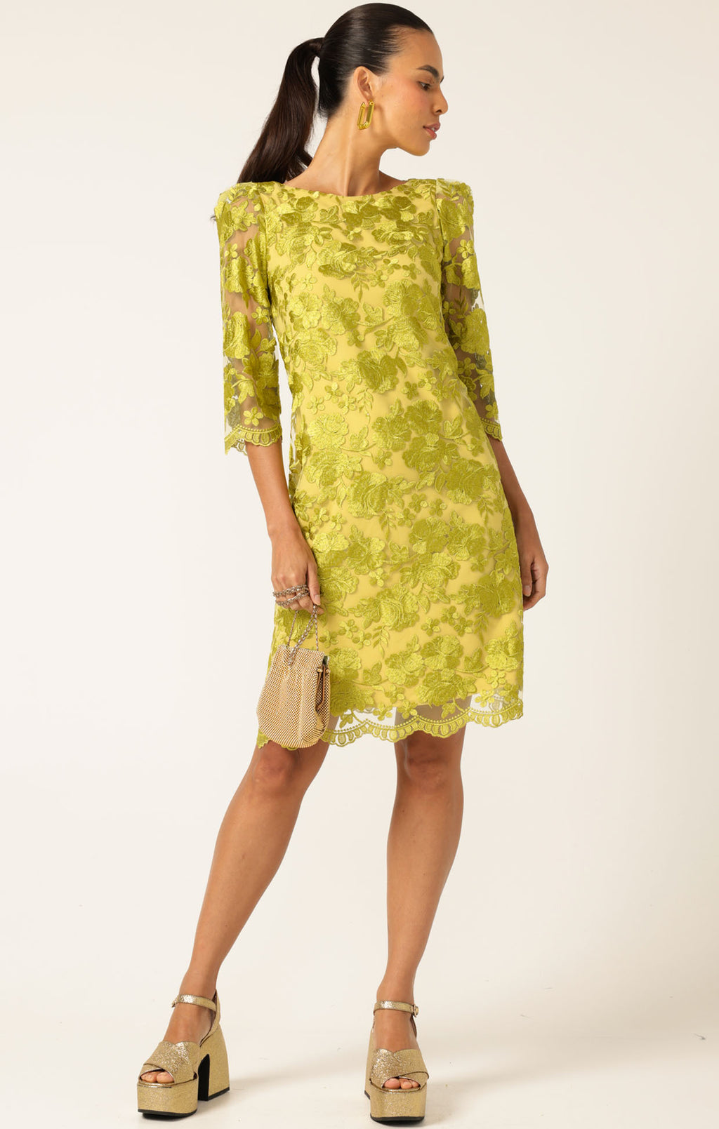 Elegant and chic, the Layla Shift Dress features a luxurious embroidered mesh with a scalloped hem and soft puffed shoulders for a romantic silhouette. Lined for comfort and finished with a back zip, this above knee tunic style is perfect for weddings and special events.