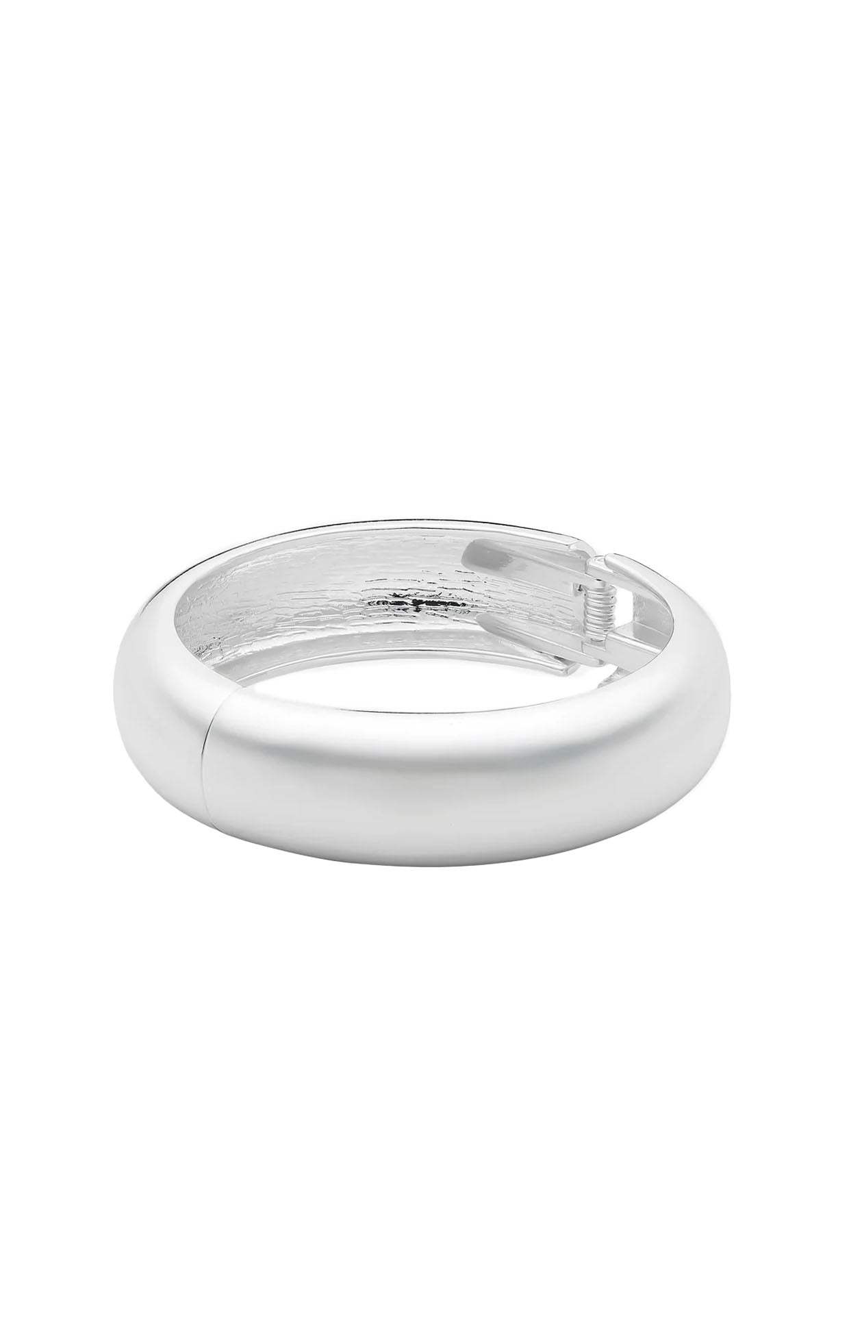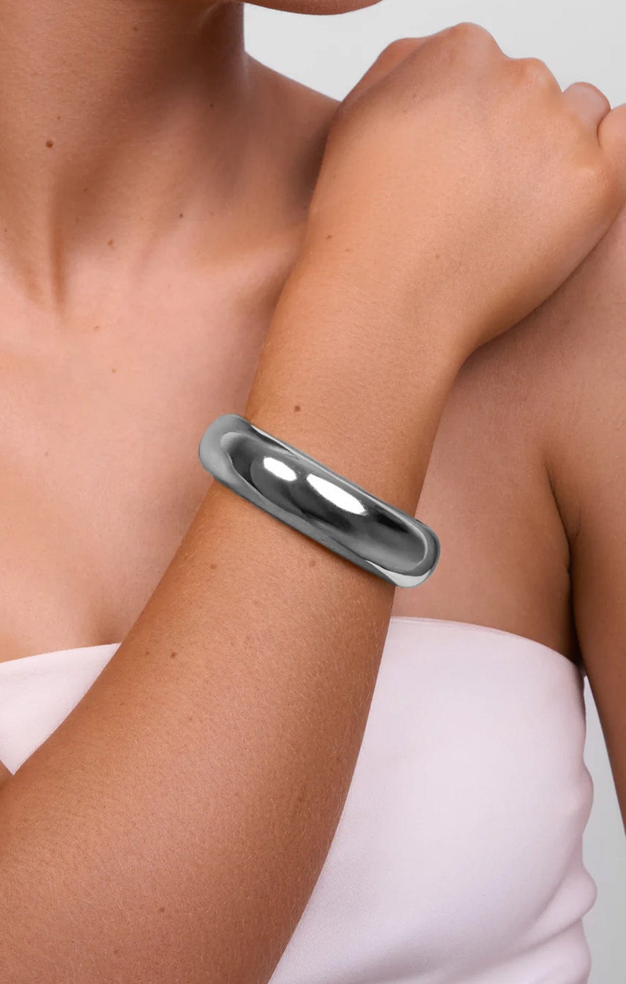 Make a bold statement with the Maggie Bangle, featuring a sleek microplated finish and a comfortable, nickel-free design. A timeless piece with modern impact, it's the perfect blend of classic style and contemporary edge.