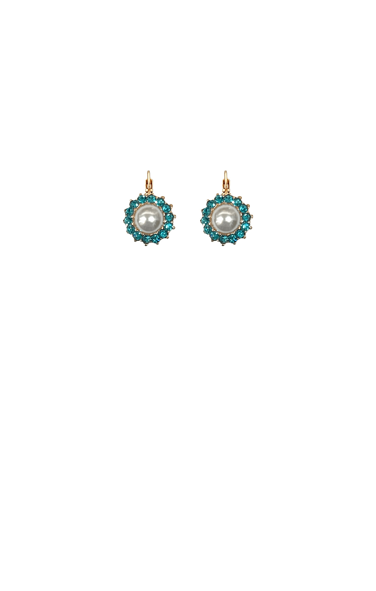 Elevate your style with the Miami Earrings in Pearl Turquoise. Beautifully set in 18-carat rose gold these elegant earrings feature a luminous pearl centerpiece surrounded by a sparkling halo of turquoise Austrian and Czech crystals. With a delicate 1.5cm diameter design and a French hook closure, these earrings combine timeless sophistication with everyday wearability. Perfect for special occasions or adding subtle glamour to your daily wardrobe.